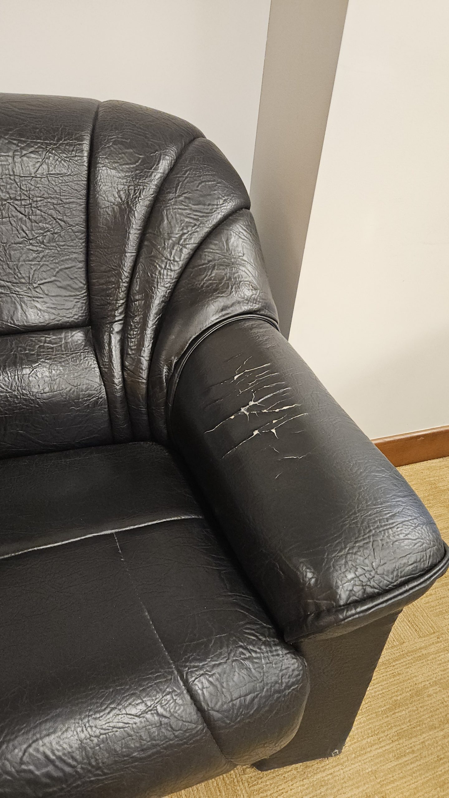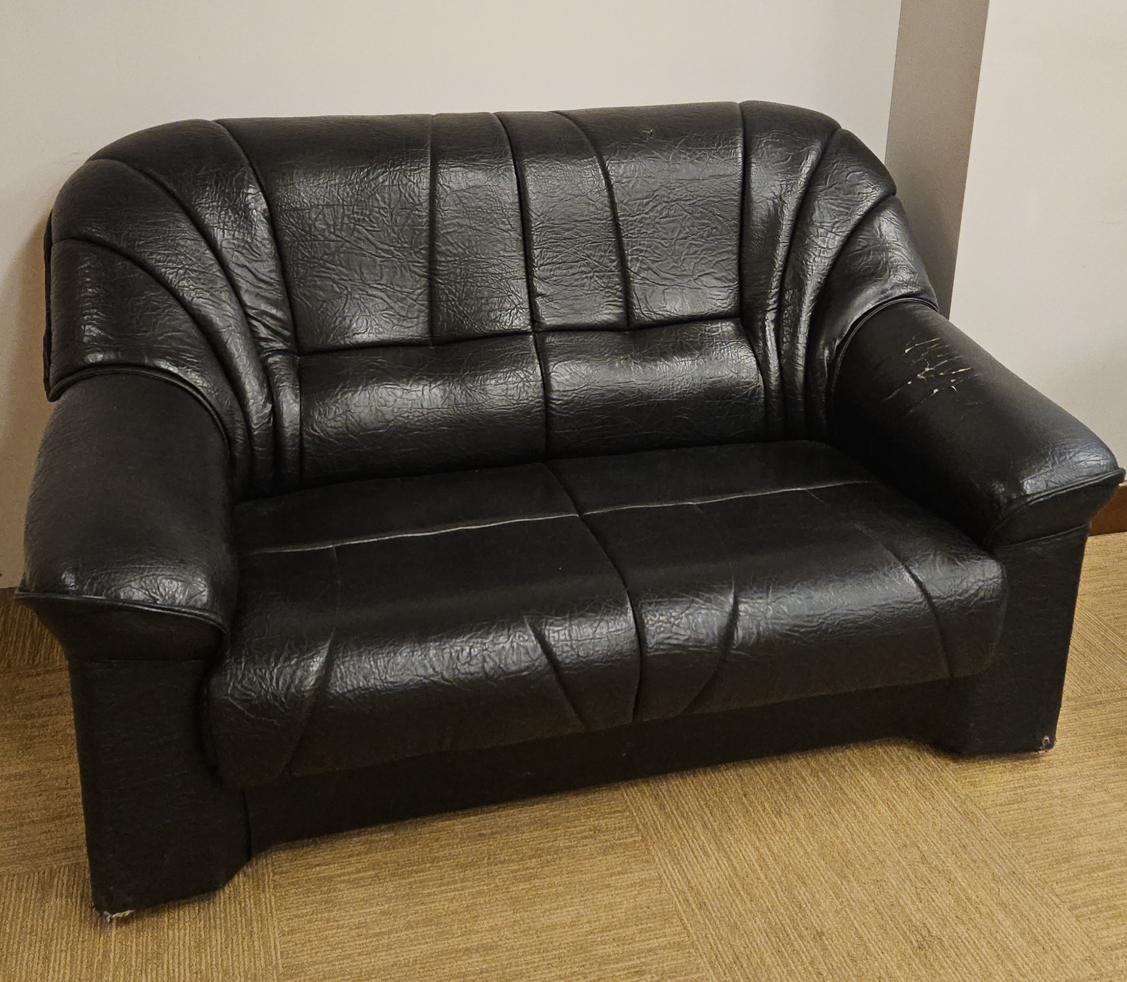 Divvietīgs ādas dīvāns, 150x94x84 cm. Ar nolietojuma pazīmēm.