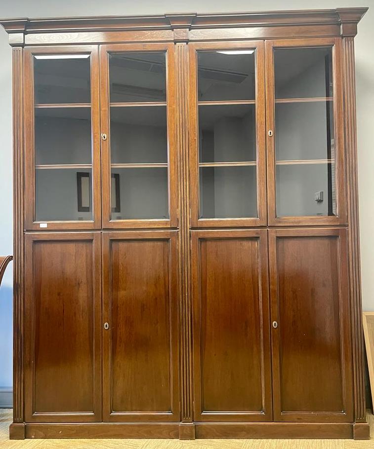 Grāmatu skapis ar stikla un koka durvīm, 191x37x230 cm
